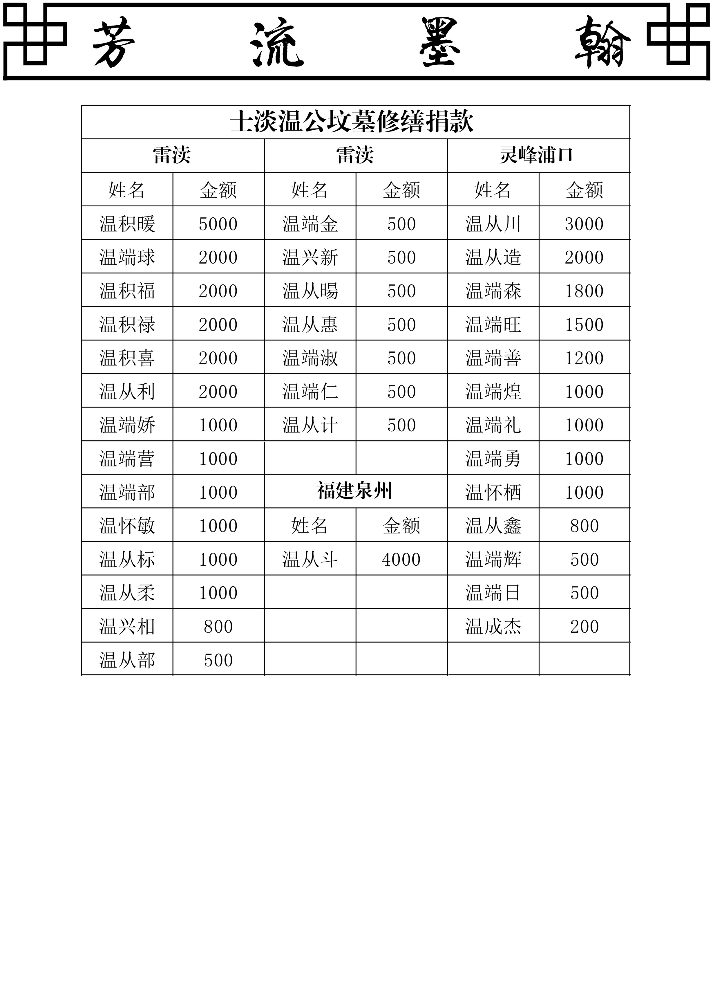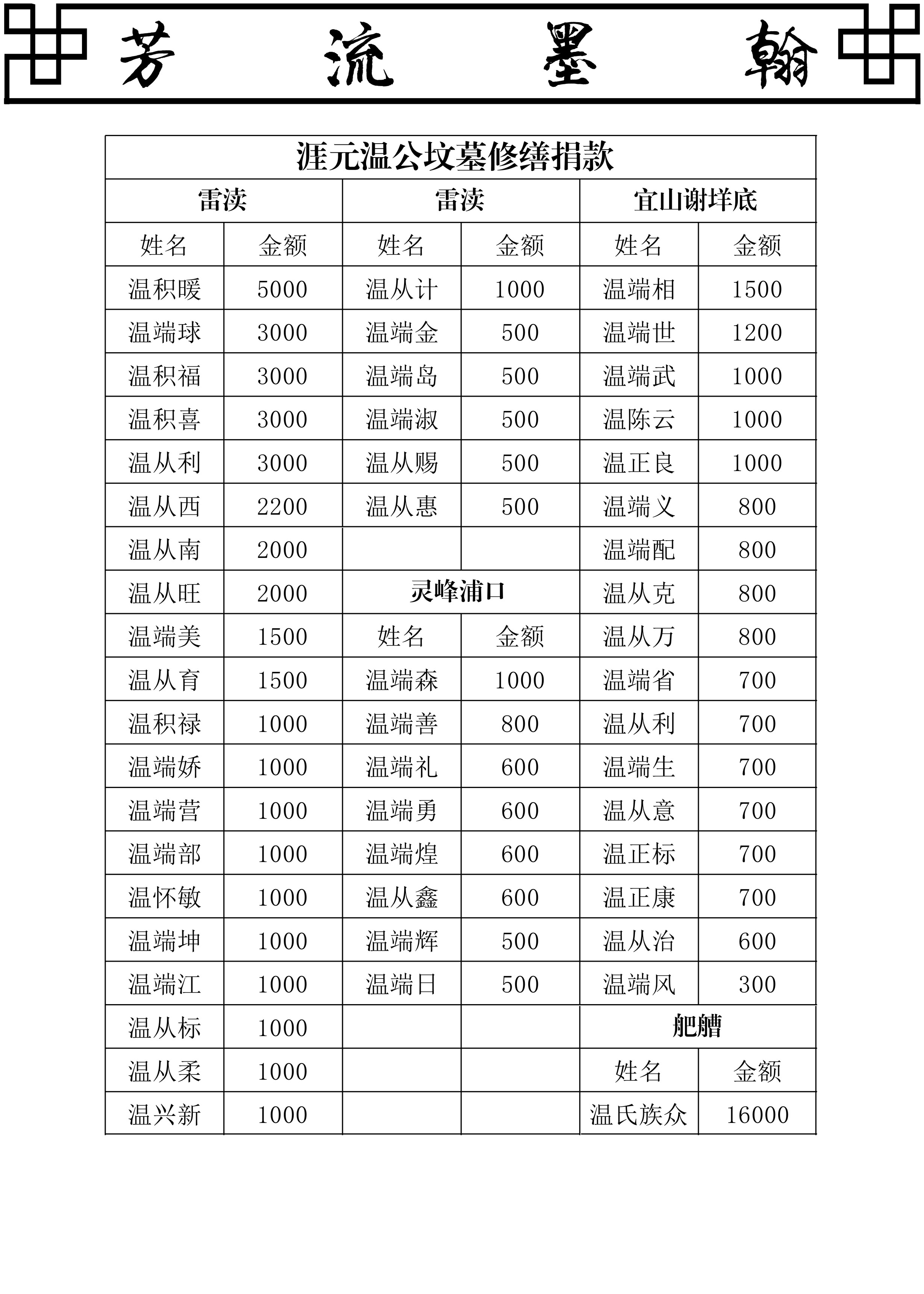 雷凟涯元公派世系 二〇二四年甲辰重修